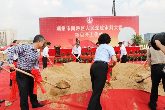 浙江省高級人民法院院長齊奇,湖州市市委、常委、紀委書記陳浩,湖州市中級人民法院院長張宏偉,南潯區區委副書記、區長吳繼平,南潯區常務副區長梅梓華等領導及我公司領導張勇、董利強等出席了開工典禮。