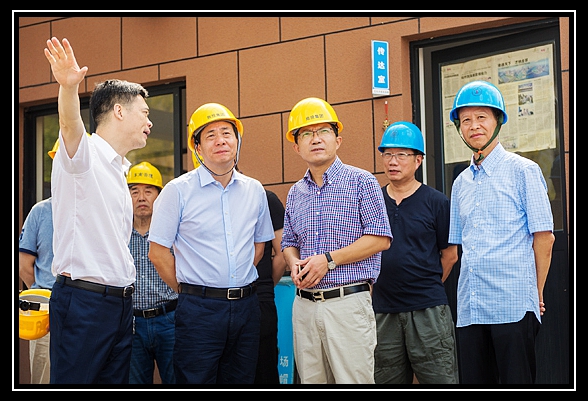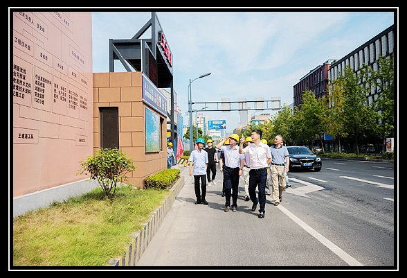 2016年8月4日上午9:30,湖州市委常委、市紀委書記陳浩、湖州市紀律檢查委員會常委張國英、旅游投資集團董事長李曉良及總經理潘耕峰等一行領導在我公司集團董事局主席楊虎麟、總裁錢國良、副總裁楊勇等領導陪同下,視察公司承建的湖州旅游公共服務(集散)中心工程。