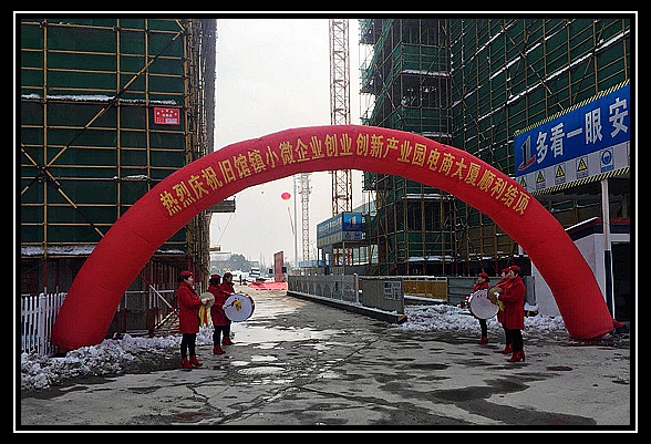2018年1月29日下午2點,舊館鎮吳書記宣布舊館鎮小微企業創業創新產業園電商大廈順利結頂。