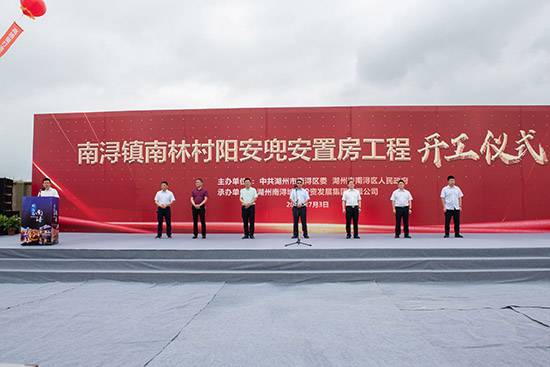 7月3日上午,南潯鎮南林村陽安兜安置房工程舉行隆重的開工典禮,南潯區副區長、南潯鎮黨委書記吳冠宇,南潯鎮黨委副書記、鎮長姚文斌,南潯鎮人大副主席顧振賢及天力集團總裁楊勇、副總裁楊毛興等領導參加開工儀式。