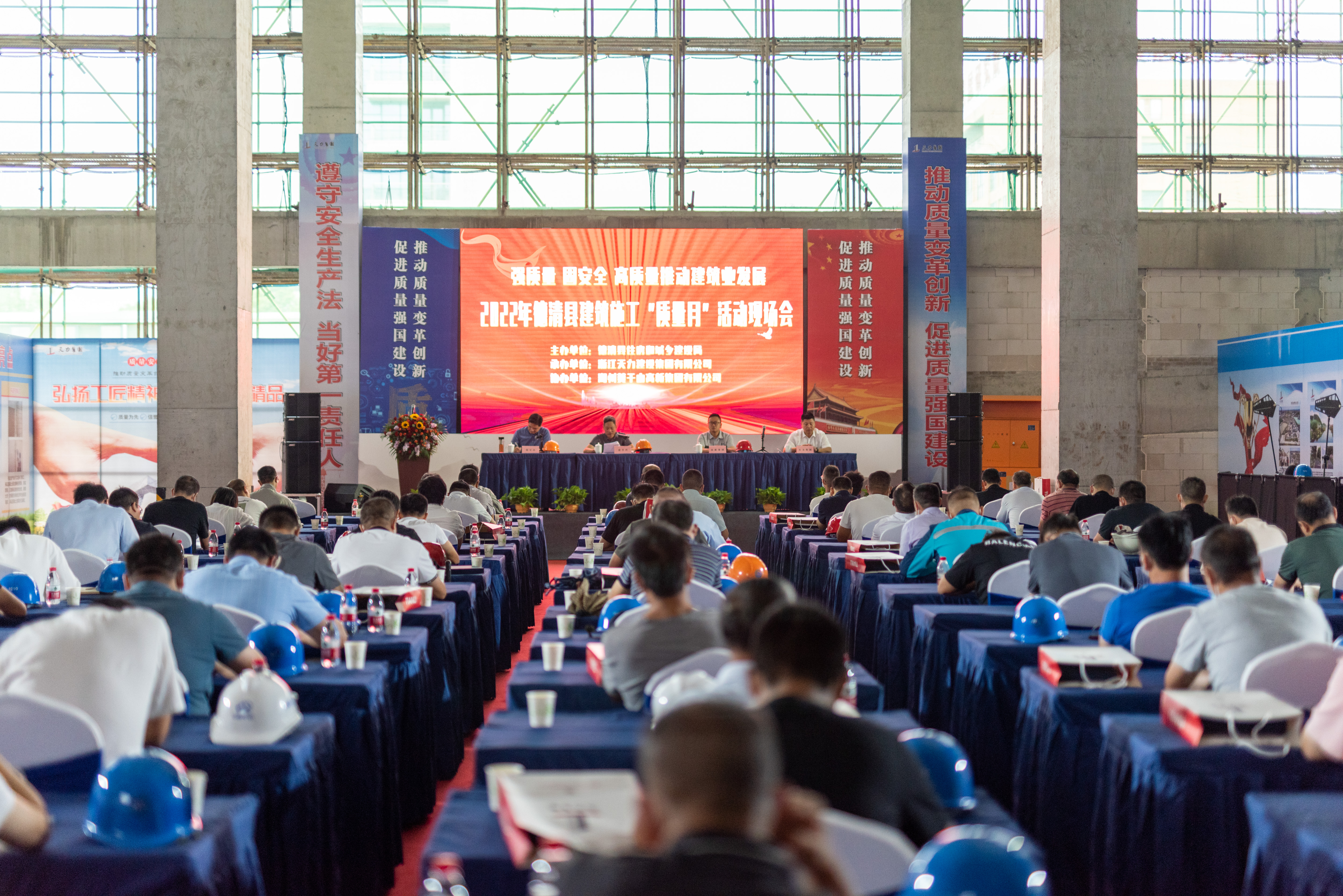 9月28日上午,由縣建設局組織召開的2022年德清縣建筑施工領域“質量月”暨“強質量、固安全,高質量推動建筑業發展”現場會在天力集團承建的千人計劃德清產業園三期擴建項目現場順利舉行,縣建設局建管科負責人,質安站、高新集團、部分建筑企業和監理企業相關負責人紛紛到場參加。