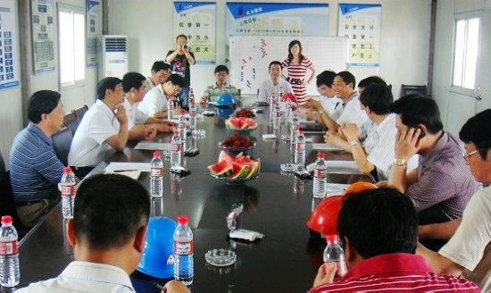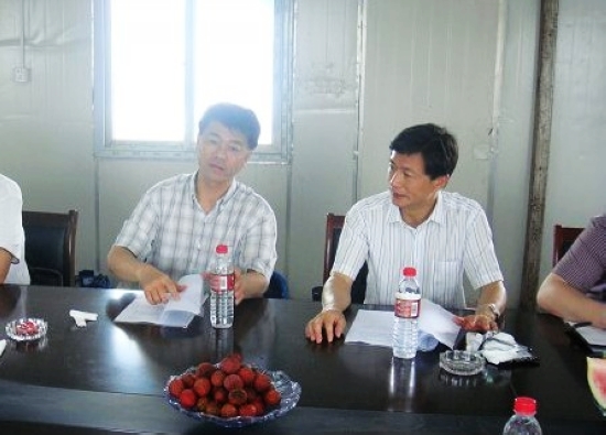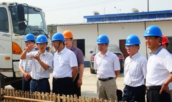 2009年6月25日,湖州市常委、市紀委王敏奇書記、市建設局局長祝時偉、副局長沈小龍再次帶領有關部門負責人考察我公司承建的北白魚潭“三房”工程施工情況。會議在現場辦公區會議室舉行,市領導在察看施工現場后,了解了項目目前的進展情況,聽取了單位的工作匯報,分析了存在的問題,并對下一步工作進行重點部署。